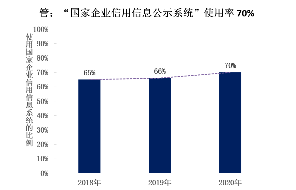 从创新市场监管来看,上门检查覆盖面达到83%,“国家企业信用信息系统”使用率达到70%。