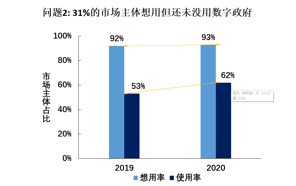 第二,31%的市场主体想用但还未用数字政府,想用但还未用数字政府的最主要原因是当前的数字政府电子终端上业务不全和不能全流程。