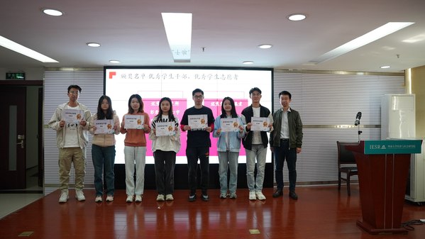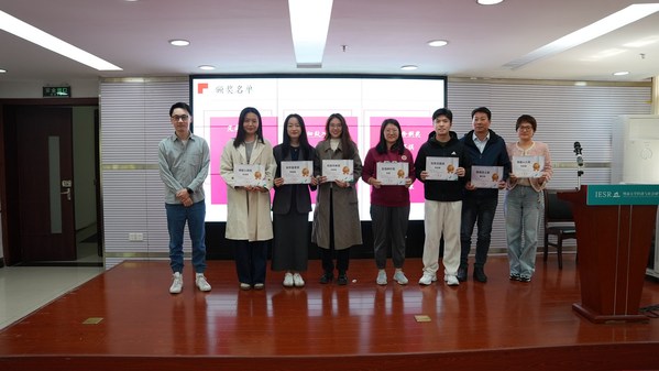 随后,活动进入总结表彰环节。研究院党支部书记、副院长薄诗雨,院长助理谢斌、党支部副书记严子中、副院长卢晶亮、社会调查中心执行主任何李芮、办公室主任徐梦瑶从思政工作、科研成果、学生培养、智库建设、数据调查以及行政工作六个方面对研究院这一年的成绩进行总结,并对各领域中做出突出贡献和表现优异的师生进行表彰。