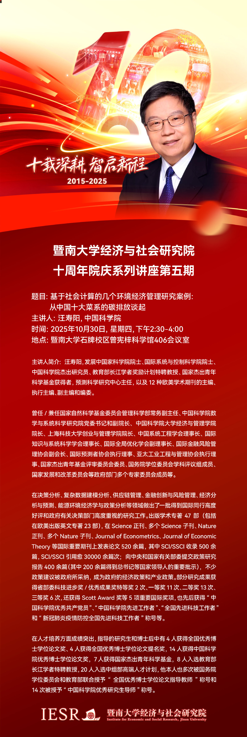 【IESR十周年院庆系列讲座第五期】汪寿阳教授(中国科学院)