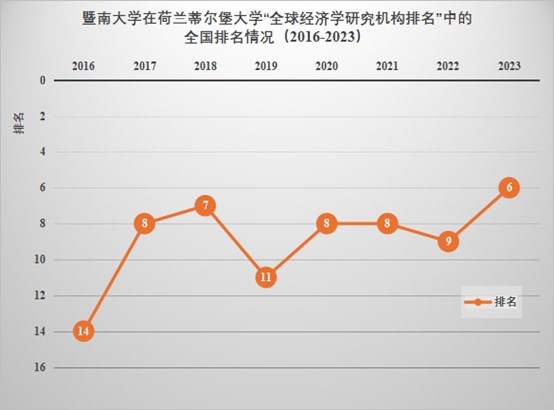 暨南大学2016-2023年度在荷兰蒂尔堡大学“全球经济学研究机构排名”中的全国排名情况