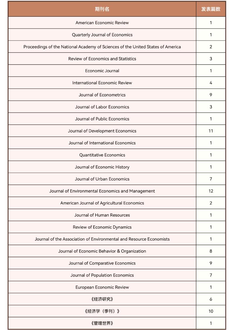 论文发表的质量同样迎来新突破,研究院多篇论文先后发表或被正式接受发表于American Economic Review、Quarterly Journal of Economics、Review of Economics and Statistics、PNAS、《经济研究》等国内外经济学权威期刊。经统计,研究院在英文A类期刊共发表文章37篇,英文A-类发表文章63篇,中文A类发表文章17篇,A类及A-类发表占比47.8%,全职教师人均在A类及A-类期刊发表论文3.5篇,充分体现了研究院教师高水平的研究质量。