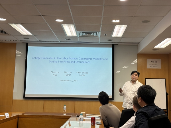 Yifan Zhang (CUHK)分享了题为“College Graduates in the Labor Market: Geographic Mobility and Sorting into Firms and Occupations”的报告。