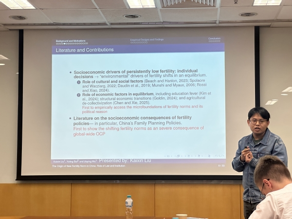Kaixin Liu (IESR)分享了题为“The Origin of the New Fertility Norm in China: The Role of Laws and Institutions”的报告。