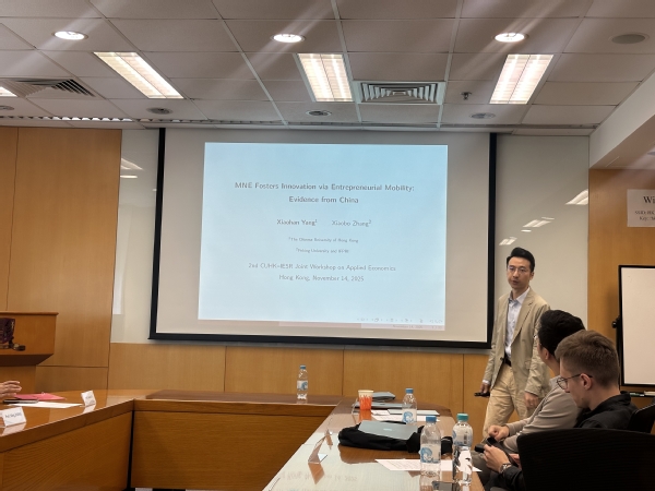 11月13-14日,由暨南大学经济与社会研究院(以下简称“IESR”)和香港中文大学经济学系(以下简称港中文经济学系)联合主办的第二届CUHK-IESR应用经济学联合研讨会在香港中文大学利黃瑤壁楼成功举办,来自港中文经济学系和IESR共20余位学者参会。会议由港中文经济学系林曙教授主持。