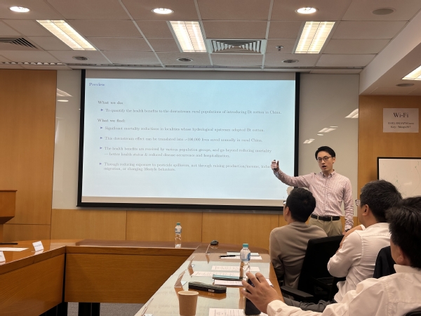 Xiaomeng Cui (IESR)分享了题为“The Unseen Harvest Down the River: Health Externalities of Bt Cotton”的报告。