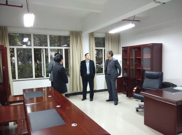 时任暨南大学校长胡军,人事处处长王兵与冯帅章院长亲切交流