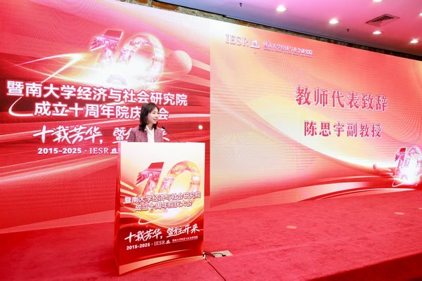 暨南大学经济与社会研究院陈思宇副教授在发言中,衷心感谢学校与研究院对青年教师成长的重视与支持,为他们提供了扎根学术、实现理想的沃土。作为一名青年学者,她特别向学院领导、同事、同学和广大校友表达了诚挚的谢意,正是在这样一个充满支持与协作的环境中,让她的科研之路倍感温暖。