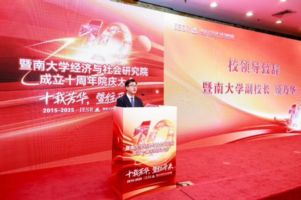十载砥砺深耕,与家国发展同频共振;十载弦歌不辍,为时代进步贡献智慧。2025年11月30日,以“十载芳华,暨往开来”为主题的暨南大学经济与社会研究院十周年院庆大会在暨南大学曾宪梓科学馆国际会议厅隆重举行。