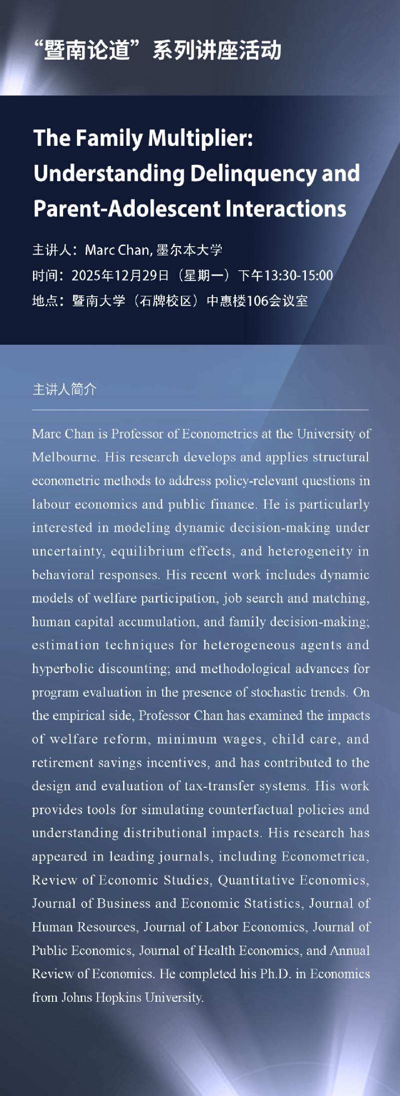【暨南论道第74讲预告】Marc Chan(墨尔本大学)