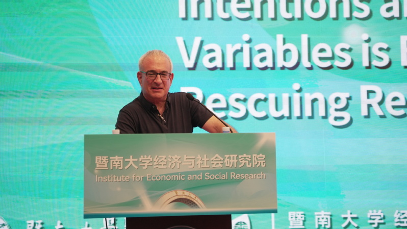 在学术交流方面,今年我院共组织了十余场学术会议,半数以上为国际学术会议。此外,学院于2025年度还举办了2场诺奖大师暨南行,7场暨南论道,44场常规seminar,8场社会调查与应用系列讲座等学术活动。2025年7月,2021年诺贝尔经济学奖得主、麻省理工学院福特经济学教授Joshua Angrist时隔六年再次访问暨南大学,开展了题为“Intentions are Good but Instrumental Variables is Better: Rescuing Real-World Randomized Trials”的全校性公开讲座。