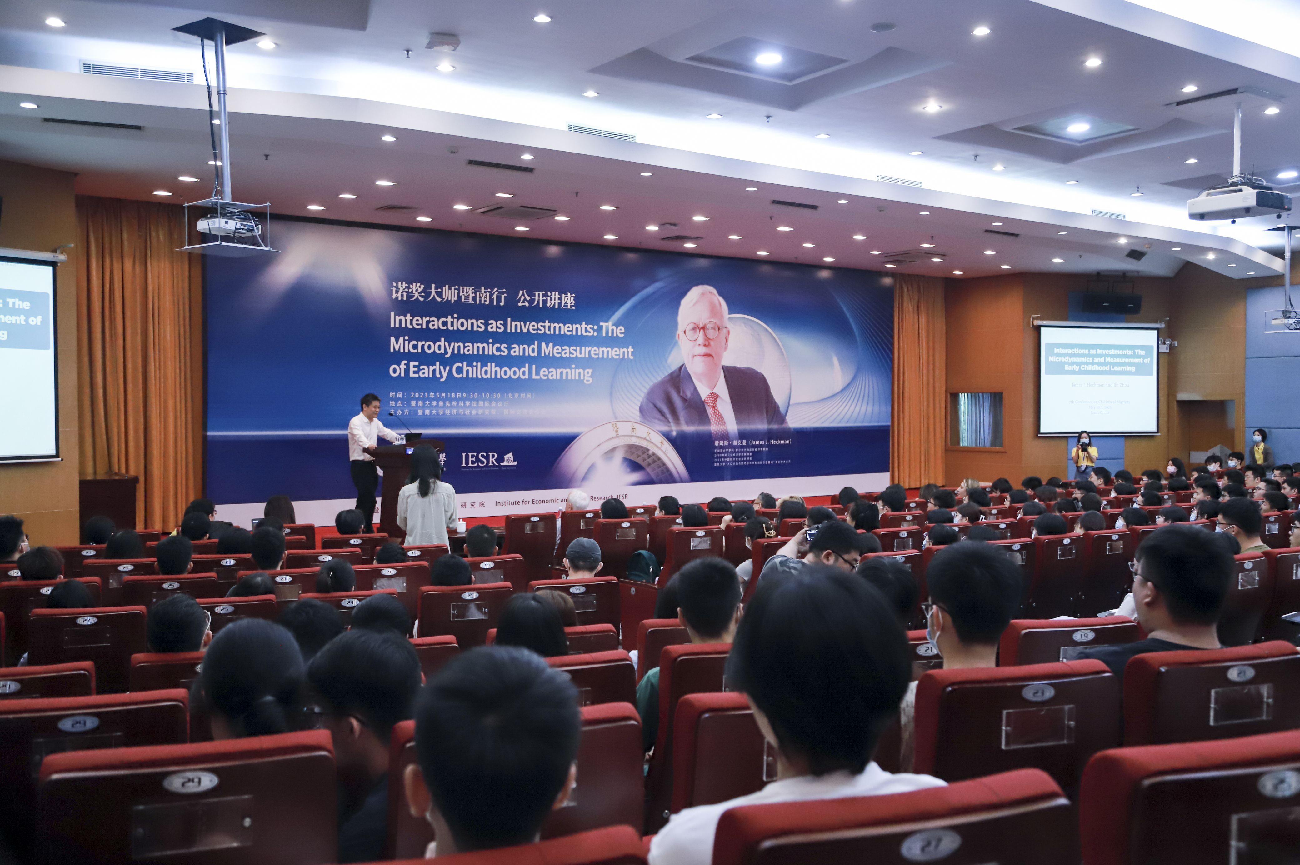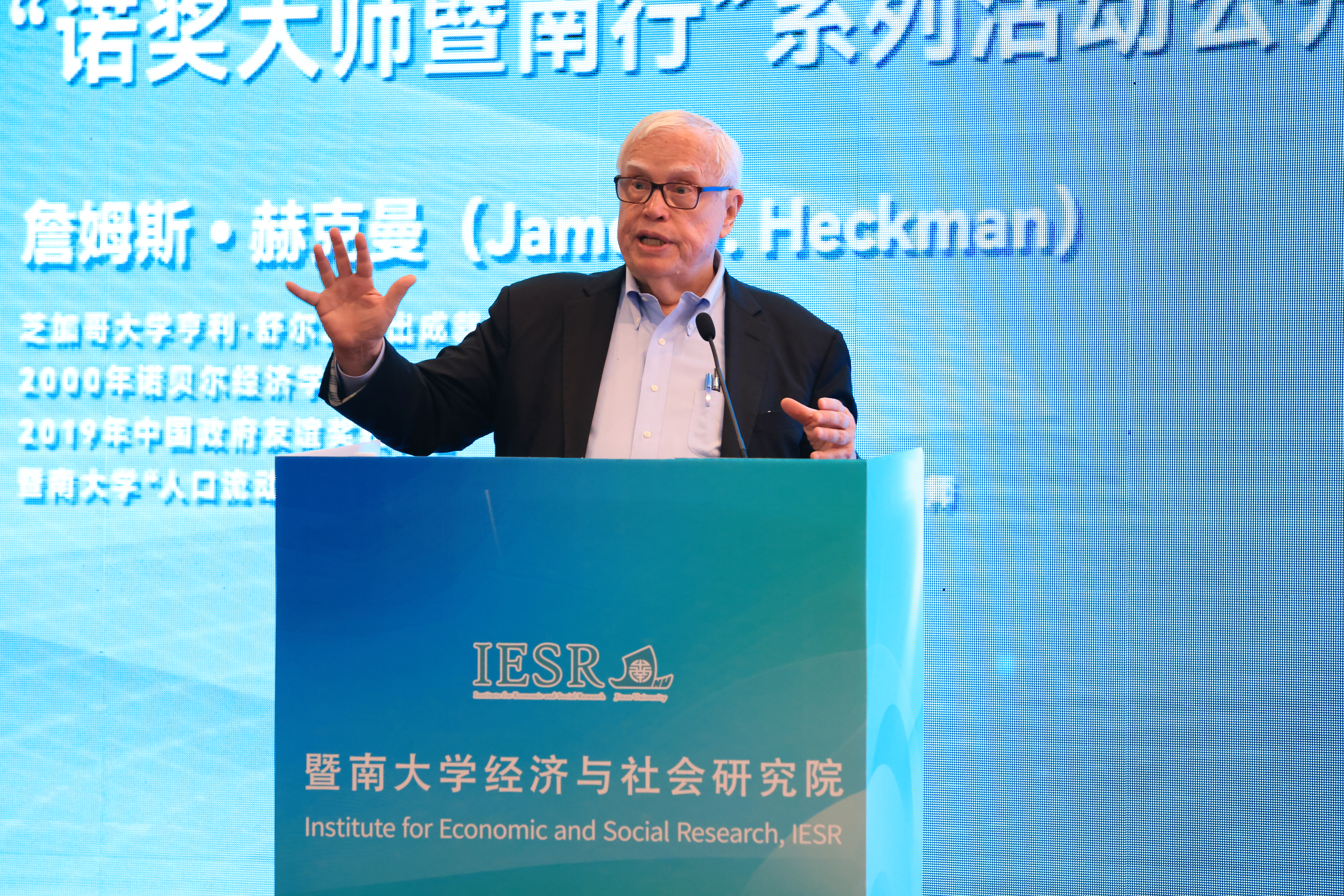 Professor Heckman delivered a lecture titled "Adapting, Adopting, and Improving New Technologies" at Jinan University, with nearly 300 participants in attendance.