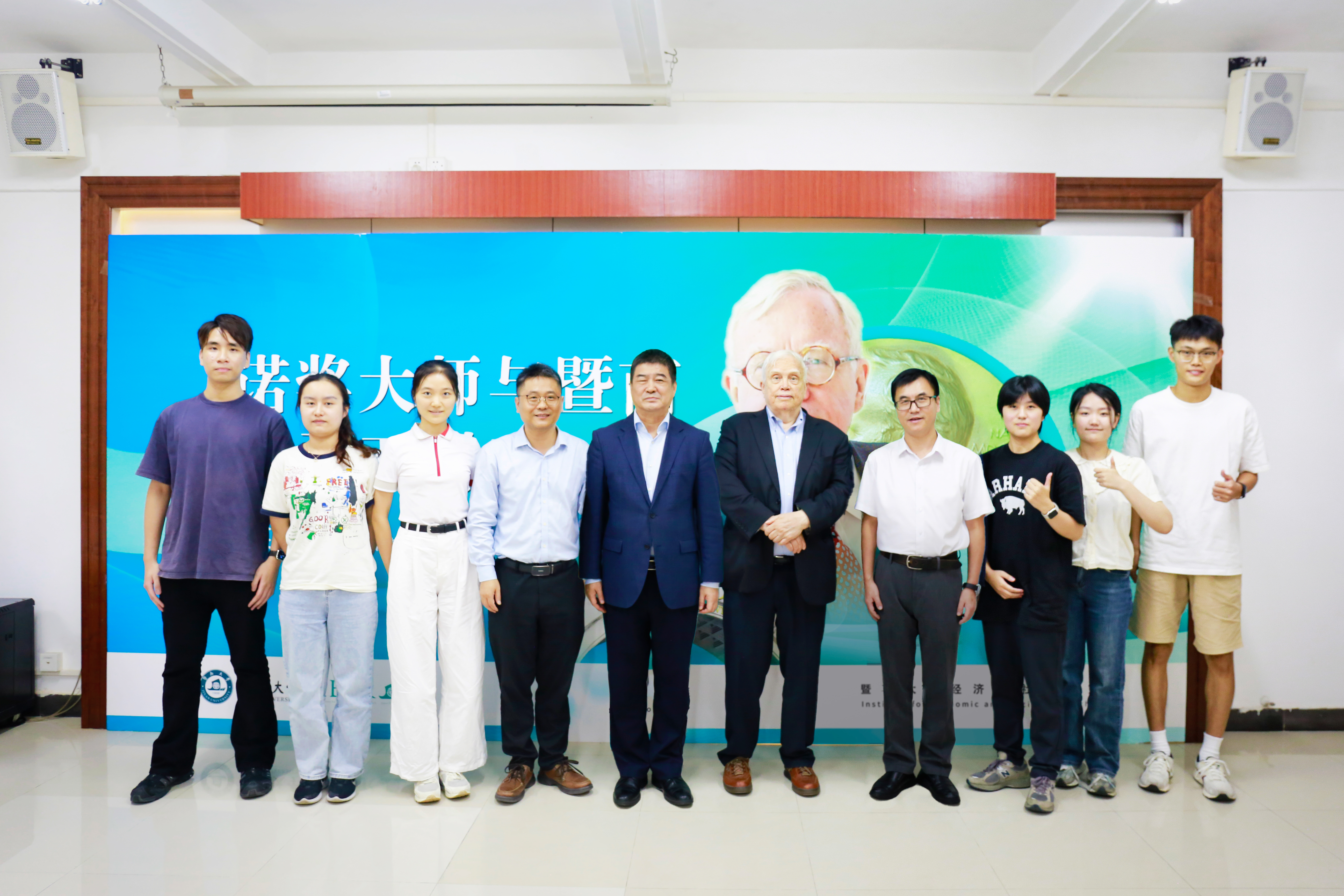 Professor Heckman delivered a public lecture entitled "The Microdynamics and Measurement of Early Childhood Learning" at Jinan University. After the lecture, Professor Heckman had face-to-face discussions with six students of the “Talents Training Program in Economics.”